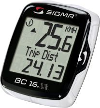 Sigma Bc 16.12 to bez wątpienia jeden z najpopularniejszych liczników rowerowych dostępnych na rynku. Swoją pozycję zawdzięcza doskonałemu połączeniu funkcjonalności i niskiej ceny. Montaż tego urządzenia jest dziecinnie prosty i zajmuje nie więcej niż dwie minuty. Licznik rowerowy Sigma Bc 16.12 został wyposażony w trzyrzędowy wyświetlacz umożliwiający korzystanie ze wszystkich standardowych funkcji. Oczywiście to urządzenie dostarczy również wszystkich niezbędnych informacji o jeździe! Tak więc, na wyświetlaczu możemy zobaczyć: